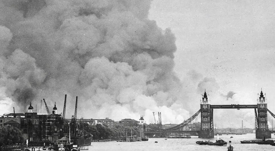 Smoke rising from fires in the London docks near Tower Bridge, September 7, 1940. © Wikimedia Creative Commons