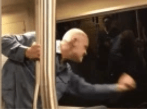 A man on a BART train attacks a fellow passenger and shouts racist taunts (Screen capture)