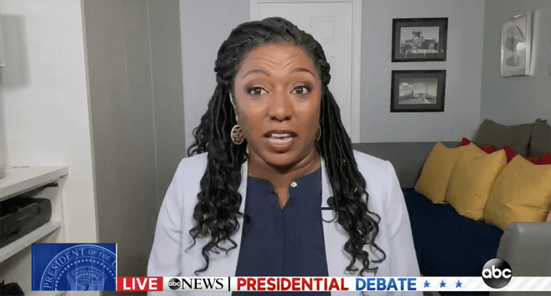 "I just want to call one thing out that I thought was really, really problematic. He said, 'I am the least racist person in this room' -- with an African-American female moderator," she said, referring to debate moderator Kristen Welker, whose mother is Black and father is Native American.
