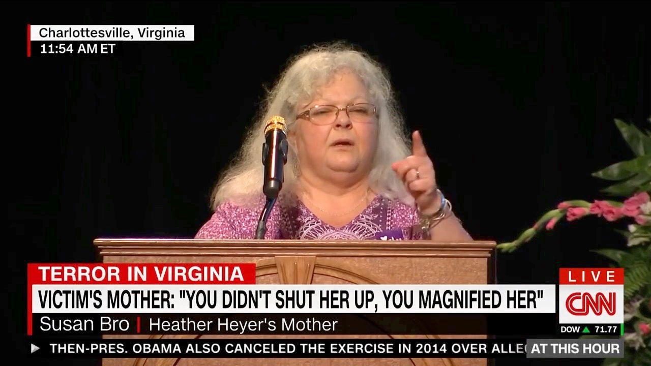 Susan Bro told a crowd gathered to remember Heyer in Charlottesville that they must make the death of her daughter, who was killed by a white supremacist, count in the fight for equal rights.