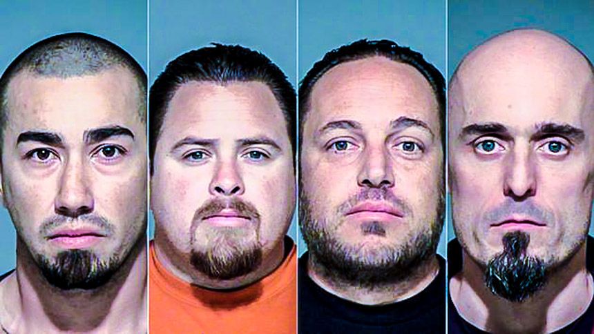 Police in California arrested four members of the Hells Angels Motorcycle Club over the weekend after they were caught leaving a holiday toy drive with illegal weapons and drugs.