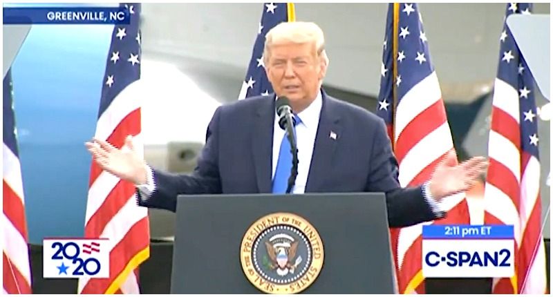During a speech at a rally in Greenville, North Carolina this Thursday, President Trump suggested that he got a little help from the man upstairs when it came to his recovery from coronavirus.