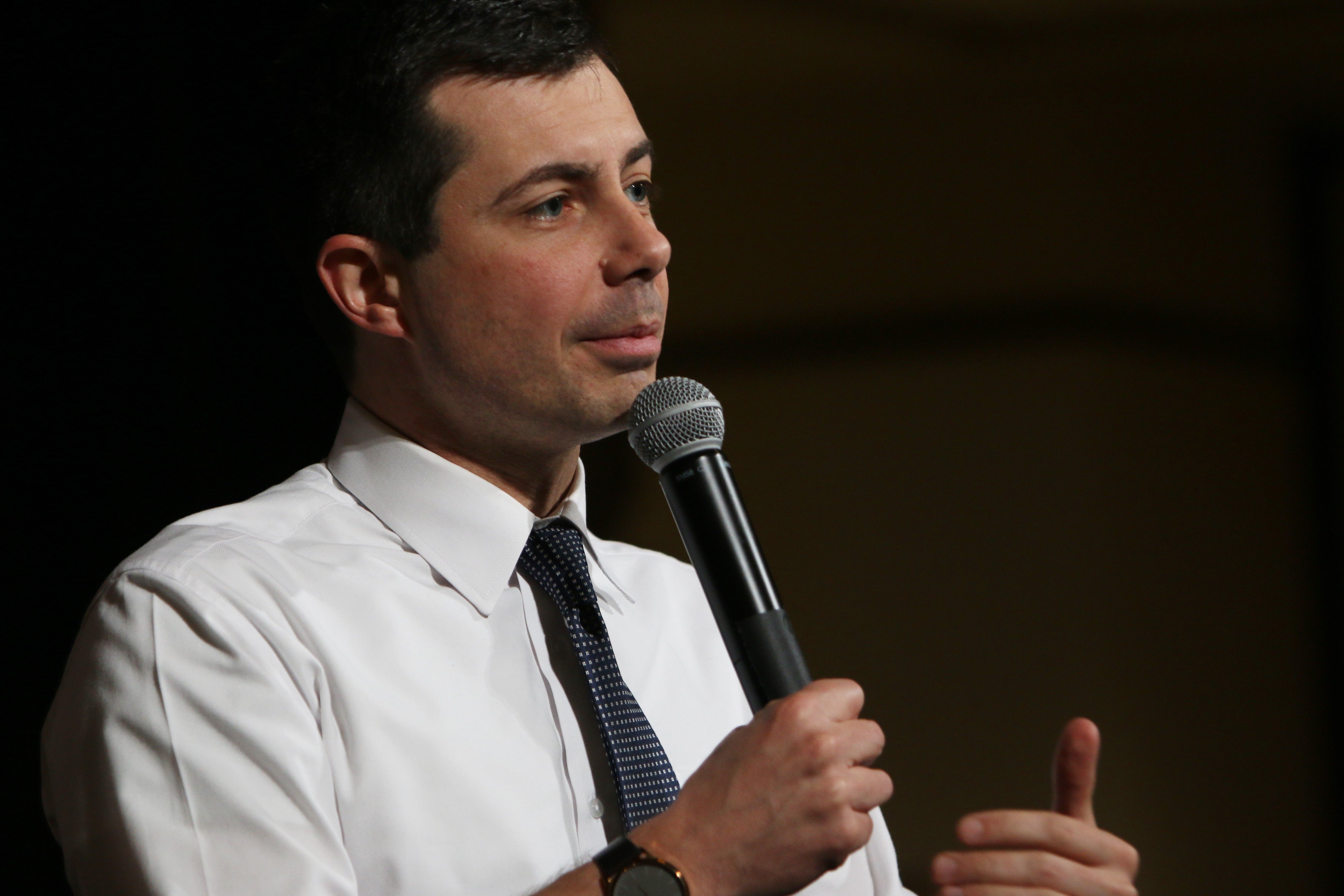 Orange City, Iowa - January 16, 2020: Pete Buttigieg, Democratic presidential candidate, speaks to the crowd at a political rally.
