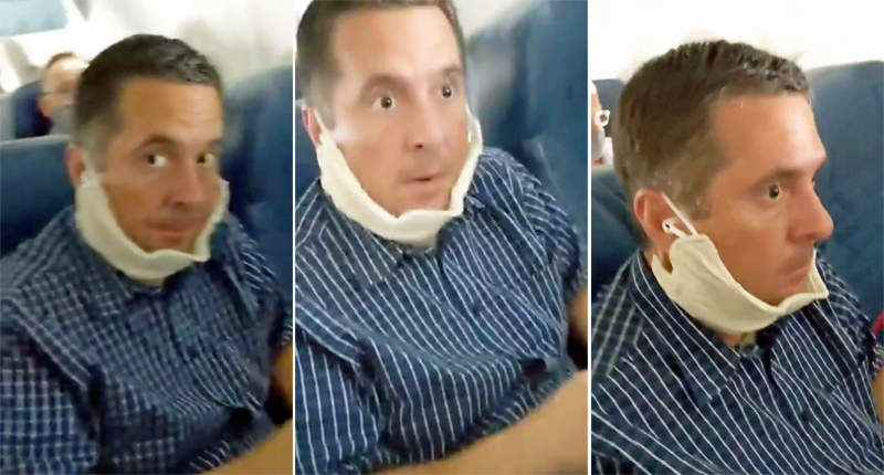 Rep. Devin Nunes fails at properly wearing a mask while aboard an airplane (screengrab)