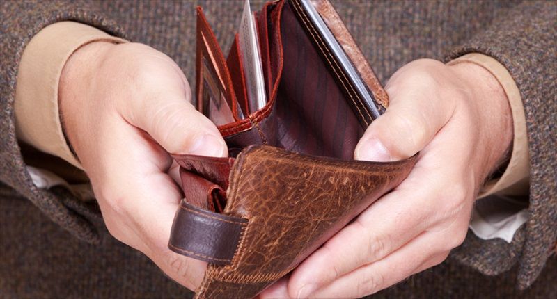 'Broke businessman showing brown leather empty wallet' [Shutterstock]