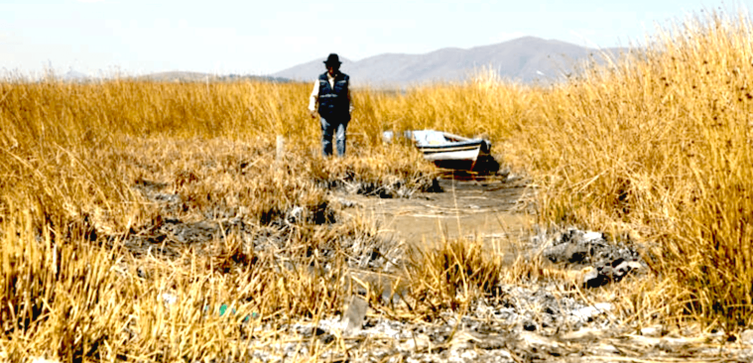 De la Cruz, a former state employee, spoke in Aymara, his native language, as he surveyed what was once the shore of Lake Titicaca, some 45 miles (77 kilometers) west of the capital La Paz.