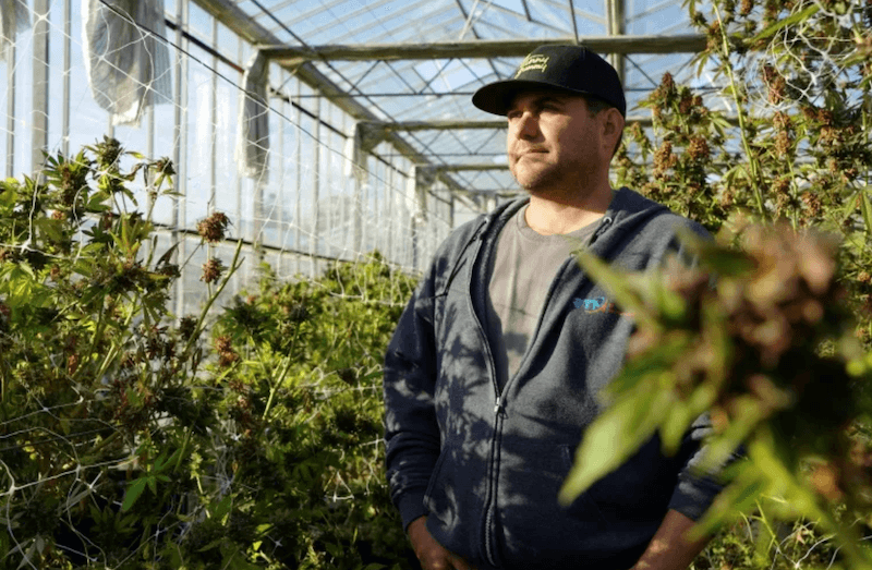 In a greenhouse in Long Island, two hours from Manhattan's gleaming skyscrapers, Ribeiro was surrounded by hundreds of leafy, pungent plants, each of which can produce pounds worth of flowers, tending to a harvest of "Blue Dream" strain.