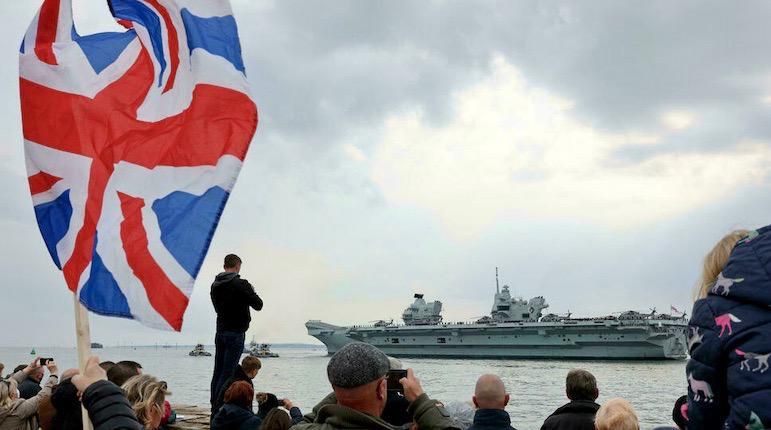 The Royal Navy's flagship, HMS Queen Elizabeth, leaves Portsmouth Naval Base on the south coast of England, on May 1 Adrian DENNIS AFP/File