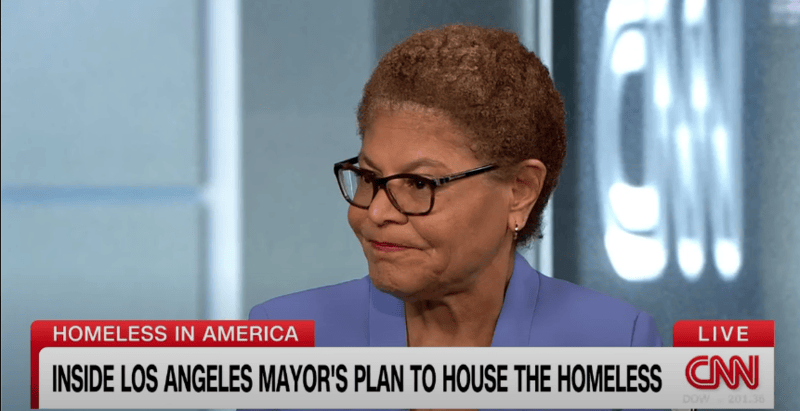 Speaking to CNN's Jake Tapper on "The Lead," on Monday afternoon, Karen Bass was asked about homelessness.