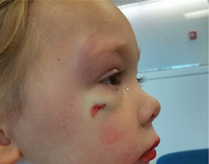 "My four year old knows 'That's not how we show we like someone. That was not a good choice,'" she said of the attack, which involved a child's metal teapot and left a gash that required two stitches to close.