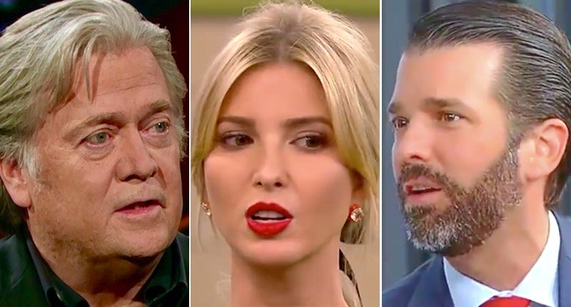 Composite image of Steve Bannon, Ivanka Trump and Donald Trump, Jr. (screengrabs)