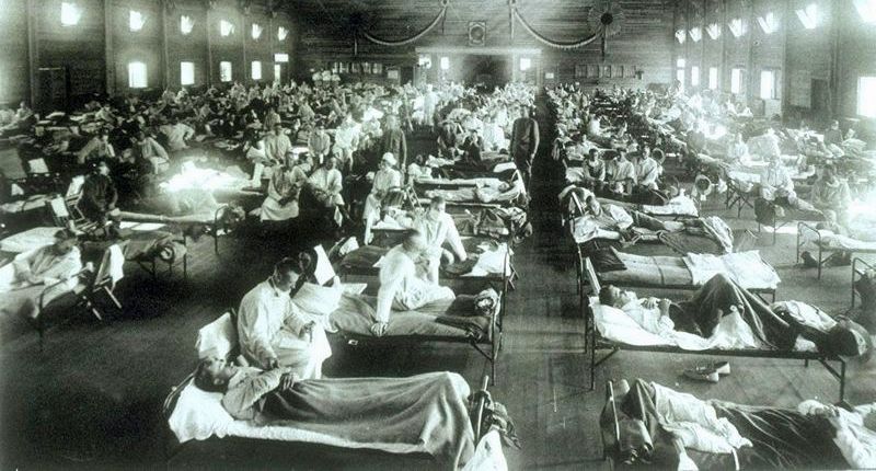 Camp Funston flu ward during the 1918 pandemic, Camp Funston, Kansas. Public domain