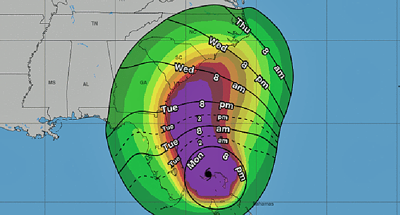 National Hurricane Center arrival prediction map for Hurrican Dorian.