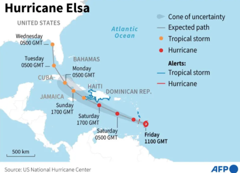 "On the forecast track, Elsa will move near the southern coast of Hispaniola later today and tonight, and move near Jamaica and portions of eastern Cuba on Sunday," the NHC said.