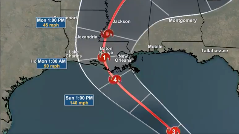 Ida is projected to hit Louisiana as "an extremely dangerous Category 4 hurricane" on the anniversary of Hurricane Katrina, the Associated Press reported Friday.