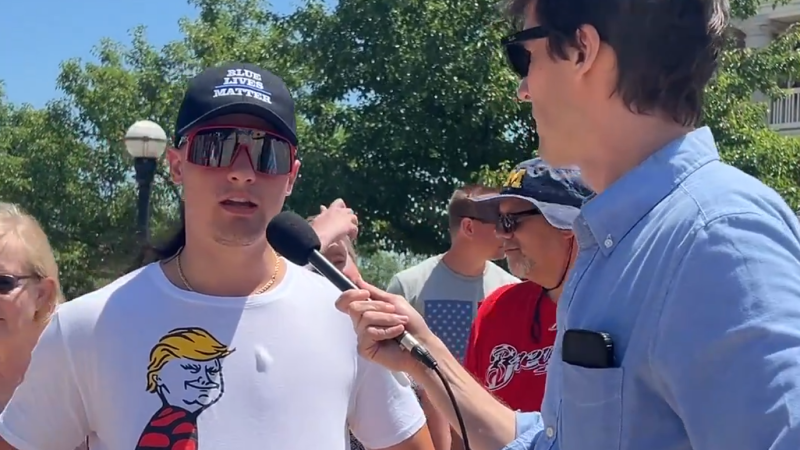 Jason Selvig of "The Good Liars" confronts a Trump supporter about CNN (image via X / The Good Liars).