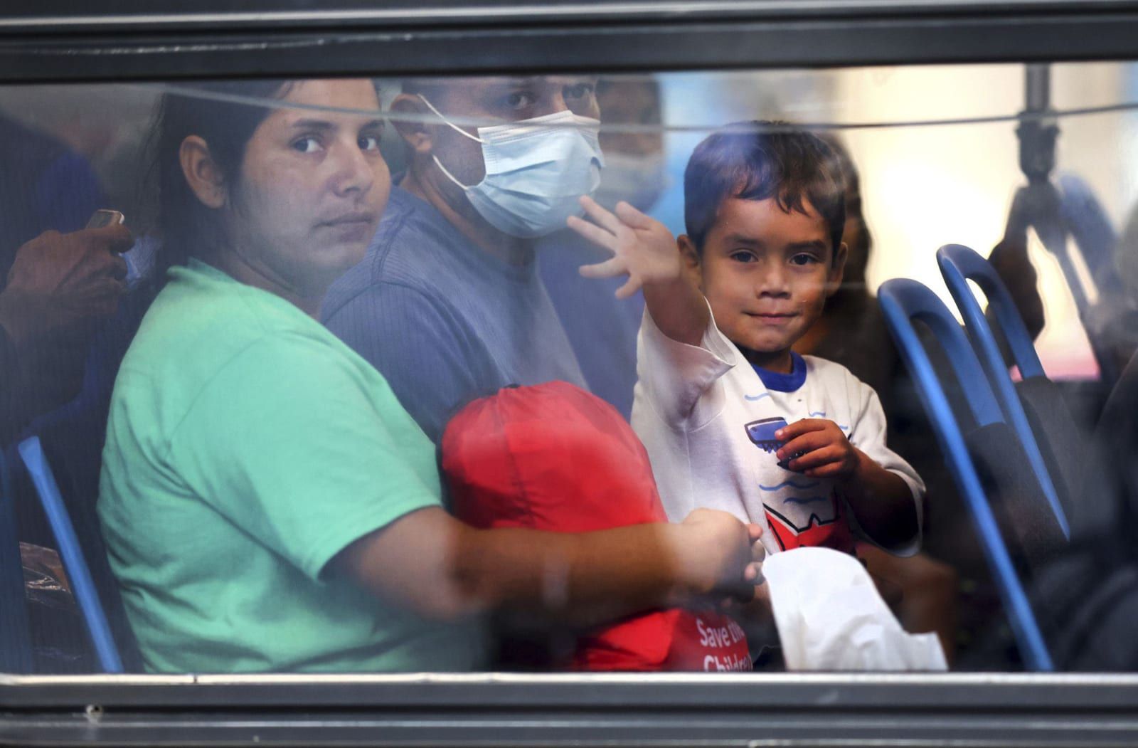 A young migrant who traveled from Texas to Union Station in Chicago waves as his family waits to depart to temporary housing on Friday, Sept. 9, 2022. - Chris Sweda/Chicago Tribune/TNS