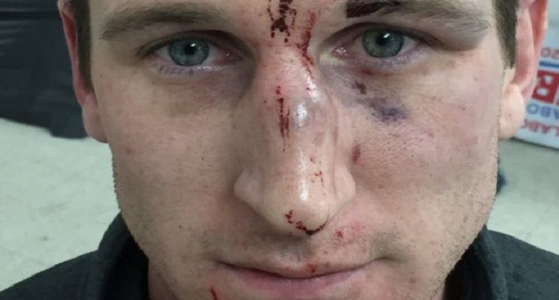 Zwolinski posted a photo of himself to Twitter showing a bleeding laceration in his forehead, with the message, "Politics is a contact sport. Apparently that's literally the case."