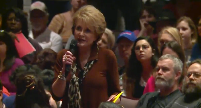 One woman at the town hall called on all people affected by the Affordable Care Act to stand up, which was followed by a crowd of people throughout the room to stand.