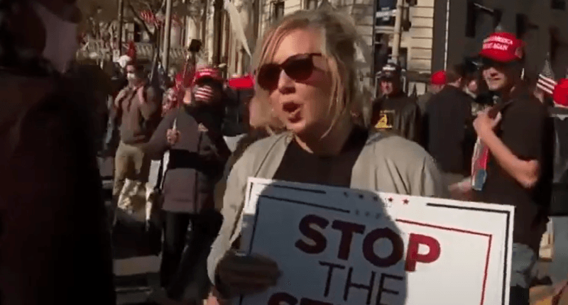 "Stop the Steal" protester questioned by Sara Sidner (Image via CNN).