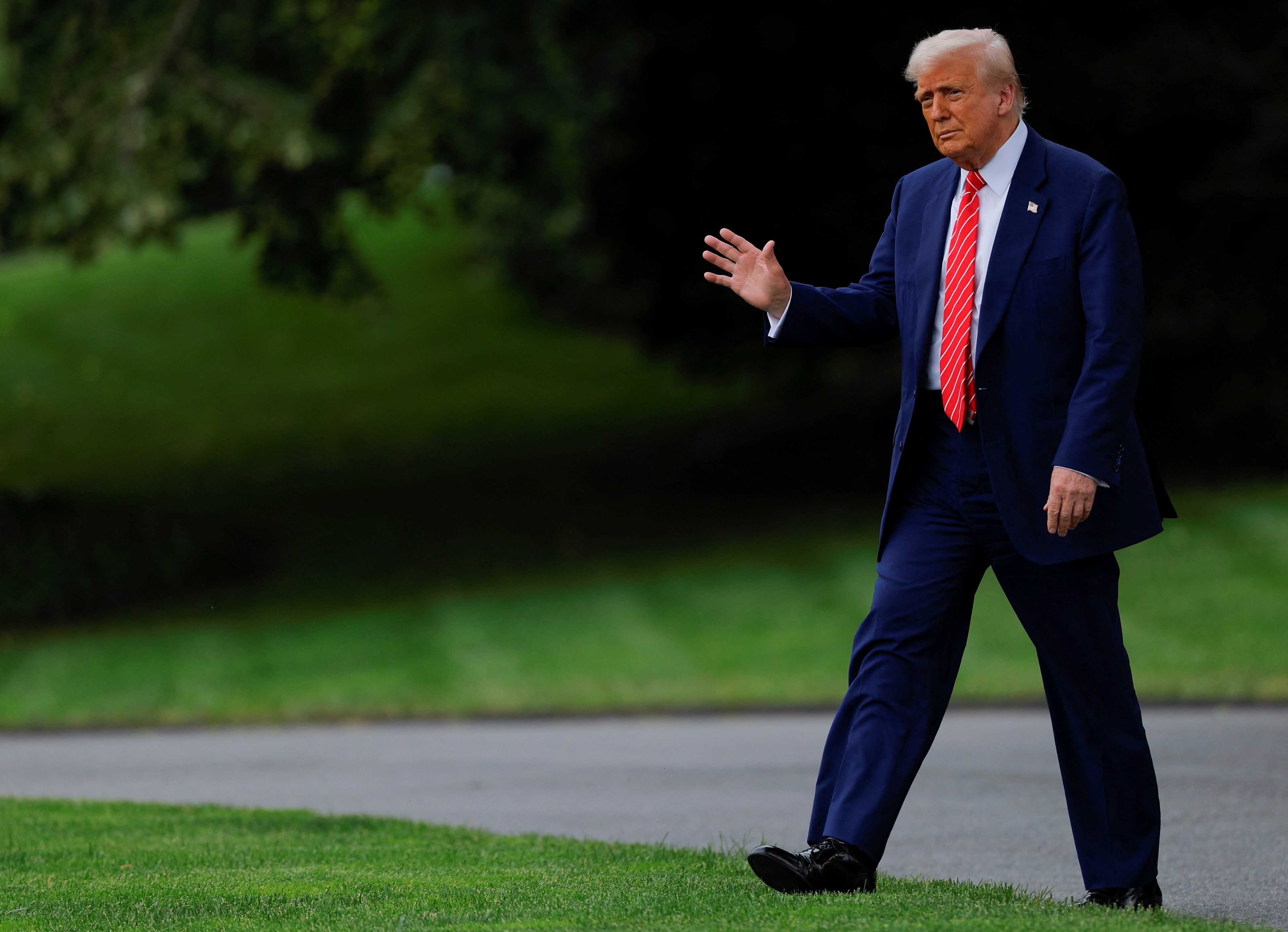 U.S. President Donald Trump gestures, as he departs for Pennsylvania, on the South Lawn of the White House in Washington, D.C., U.S., May 30, 2025. REUTERS/Kent Nishimura