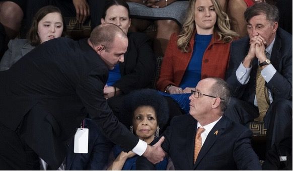 According to Will Goodwin of Vote Vets, who was sitting near Guttenberg in the chamber, Guttenberg had "leaned over and said, 'I'm about to get kicked out but I can't stand this'" just before his protest.