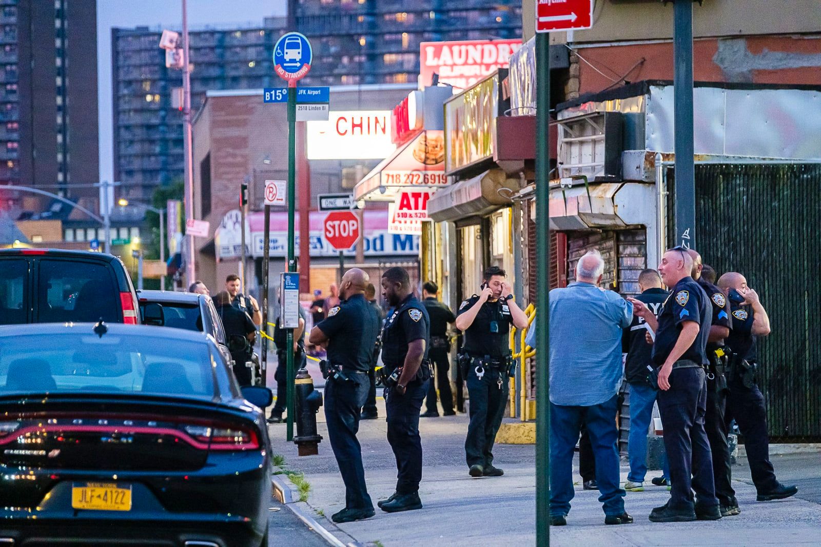 NYPD officers and detectives investigate a shooting at a deli on Linden Blvd. near Fountain Ave. in East New York, Brooklyn, Wednesday, July 27, 2022. - Jeff Bachner/New York Daily News/TNS