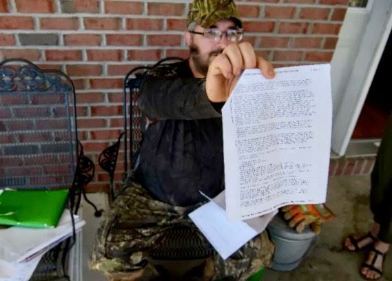 Farmer Bryan Latkanich shows a toxicology report for his son during an interview at his home in Deemston, Pensylvania