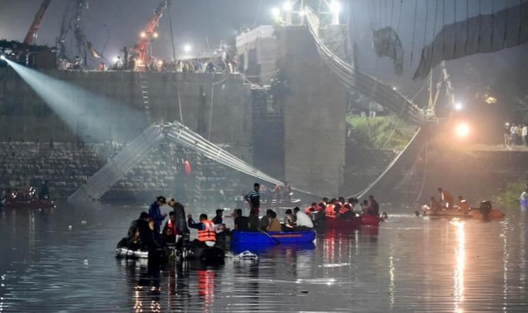 At least 120 people were killed in India after a colonial-era pedestrian bridge collapsed, sending scores of people tumbling into the river below SAM PANTHAKY AFP
