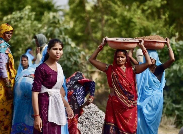 Together they carry rocks and mix concrete to build dams, ponds and embankments to catch the fruits of the June monsoon, a season which accounts for about 75 percent of India's annual rainfall.