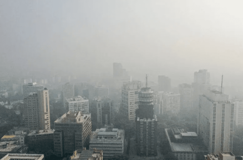 The city's famous India Gate monument was wreathed in foul-smelling mist.