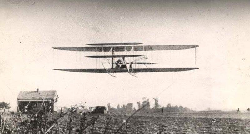 Wright brothers flying over the Kohn plantation in Montgomery, Alabama (Wikimedia Commons)
