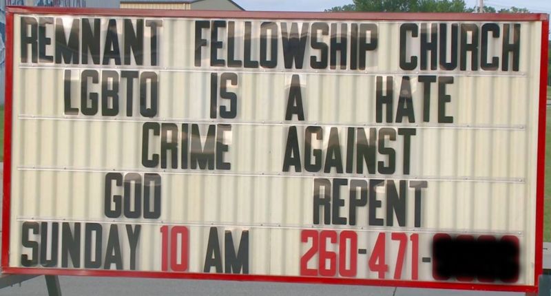 On Wednesday, June 27, Remnant Fellowship Church in Auburn posted a sign reading, "LGBTQ is a hate crime against God. Repent."