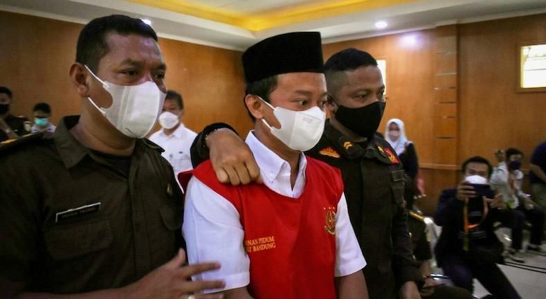 Wirawan's pattern of abuse at the school, also in Bandung, came to light when the family of a female student reported him to police for raping and impregnating their teenage daughter last year.