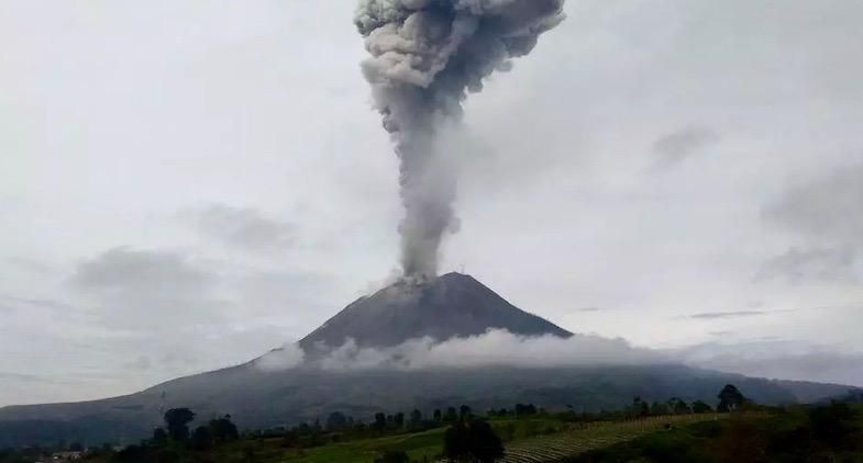 Indonesia's Mount Sinabung erupted on Friday, spewing a massive column of smoke and ash up to 2,800 metres into the sky.