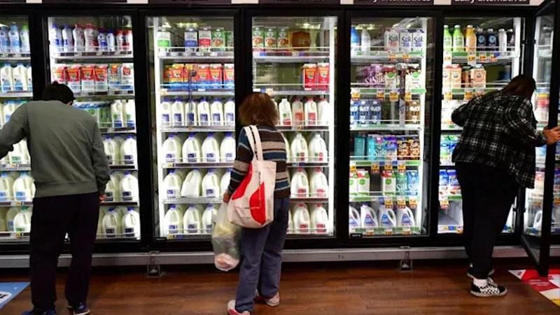 Grocery prices continued to rise in April 2022, though at a slower pace than March 2022, with dairy products jumping 2.5 percent in the month (AFP/Frederic J. BROWN)