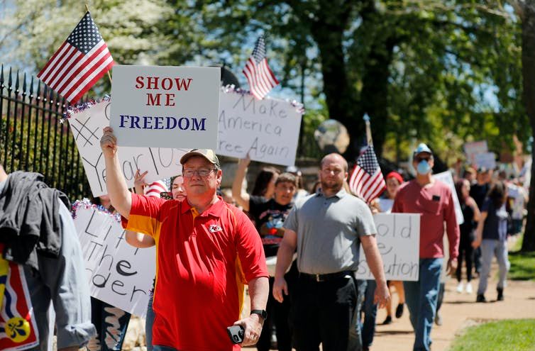 The available evidence suggests that the demonstrations were organized by paid political operatives using Facebook and new websites to encourage conservatives to protest in specific places against specific governors who had imposed strong public health restrictions on economic activity. This context indicates that one real intention of the protests was to create the illusion of an organic movement that had arisen to object to the restrictions. Evidence is to the contrary: Polling shows that just 12% of Americans think their local restrictions have gone too far – and 26% think they don’t go far enough.