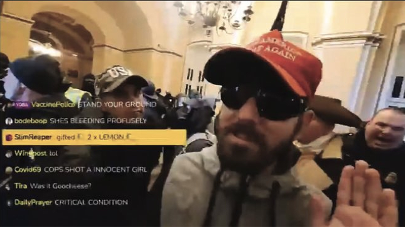 Dan Goodwyn aka "sfthoughtcriminal" during Capitol attack (Photo: FBI indictment)