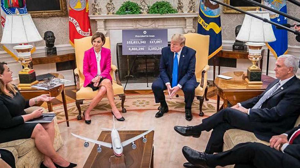 Kim Reynolds meets with Donald Trump and Mike Pence in the White House Oval Office (Facebook)