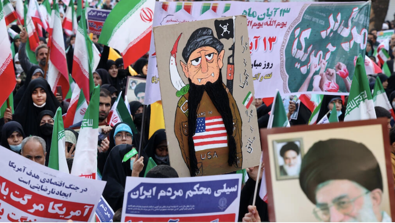 Iranians wave their country's national flag at a rally outside the former US embassy in Tehran ATTA KENARE AFP/File
