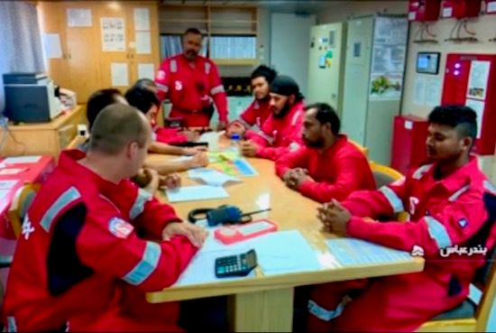 In new footage aired by Iranian state television, the crew of 18 Indians, three Russians, a Latvian and a Filipino are seen sitting around a table and seemingly going about their daily routines.