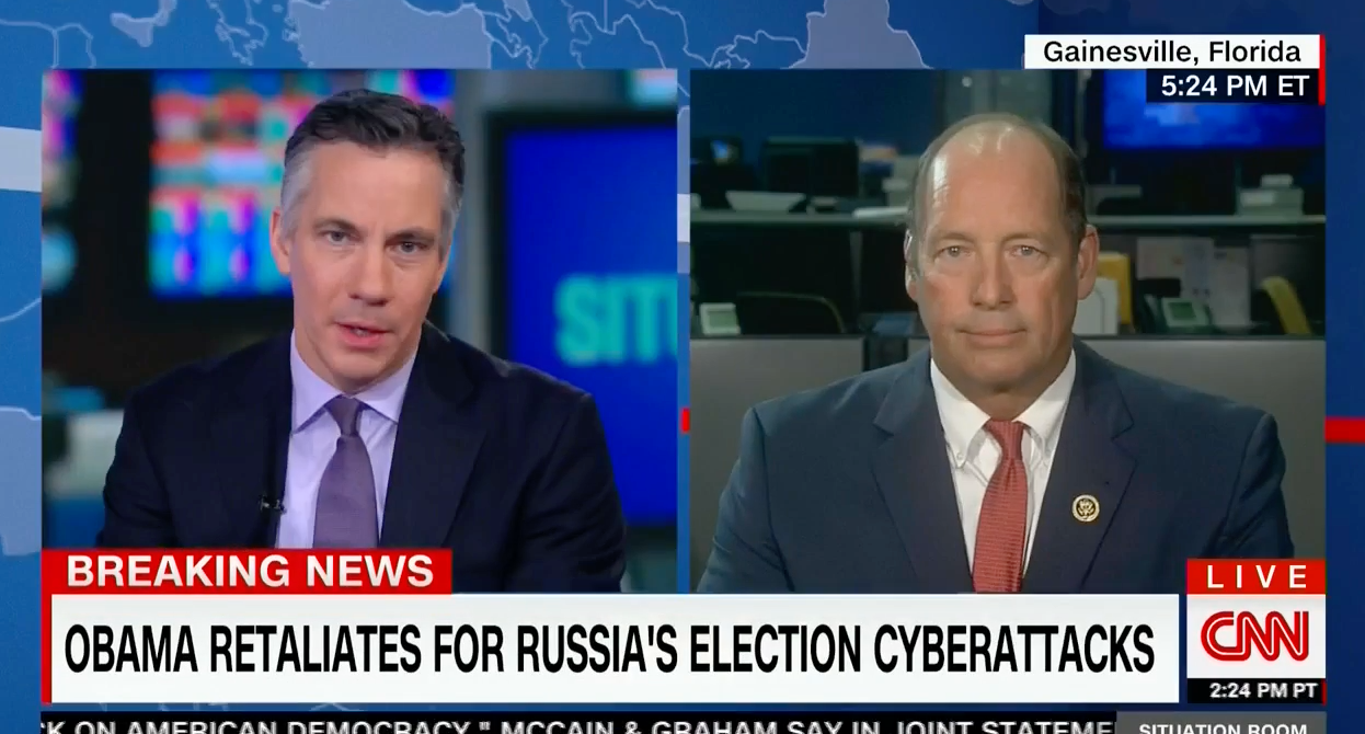 CNN’s Jim Sciutto grilled Rep. Ted Yoho (R-Fla.) Thursday over the congressman's refusal to accept the intelligence community’s consensus that Russia attempted to impact the election, reminding him it's his job to "hold foreign nations accountable" when they interfere with the United States.