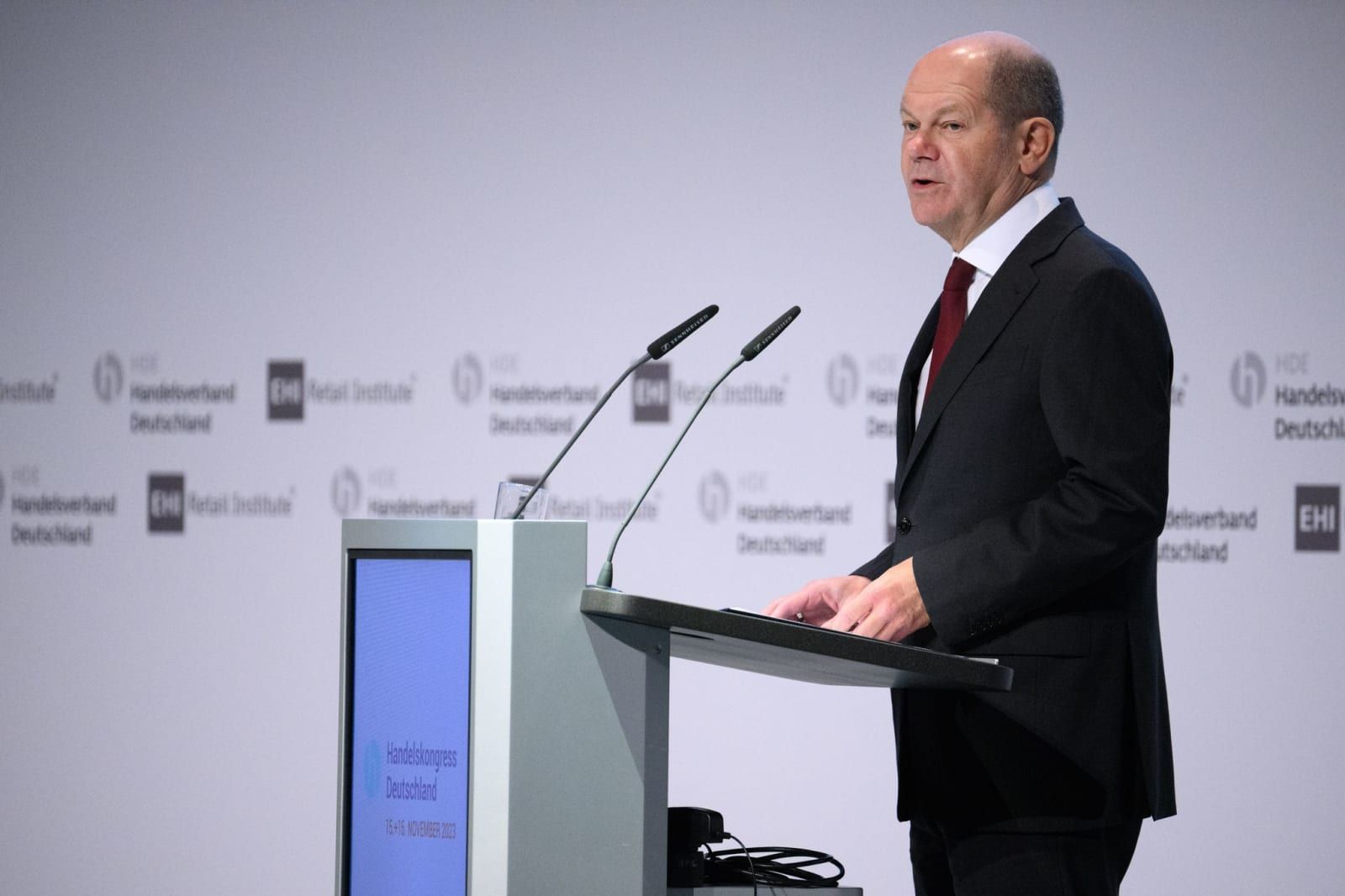 German Chancellor Olaf Scholz speaks at the German Retail Congress organized by the German Retail Association (HDE). Bernd von Jutrczenka/dpa