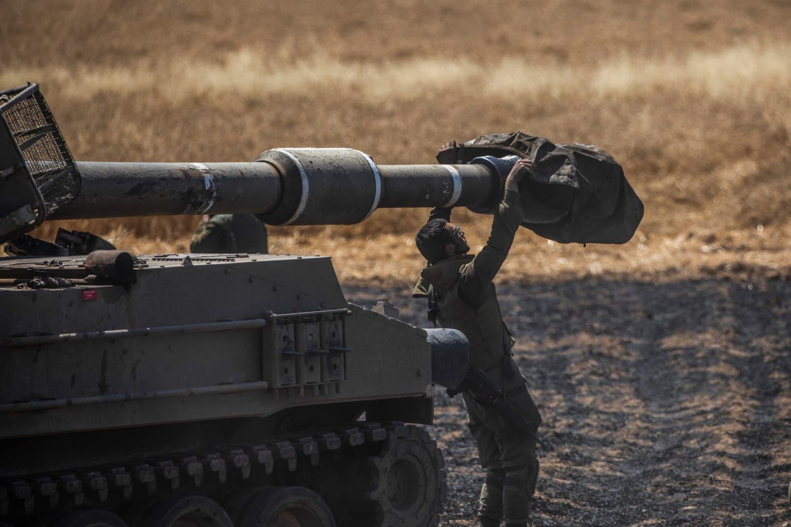 A soldier of Israel Defence Forces (IDF) prepares an Israeli army artillery battery at the Israeli Gaza border near Sderot, amid the escalating flare-up of Israeli-Palestinian violence. Ilia Yefimovich/dpa