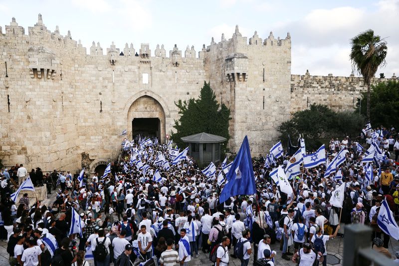By Rami Amichay JERUSALEM (Reuters) -Tens of thousands of Israeli nationalists marched through the Muslim quarter of Jerusalem's walled Old City under heavy security on Thursday in an annual event that drew condemnation from Palestinians. The parade is the main celebration on Jerusalem Day, when Israel marks its capture of Jerusalem in the 1967 Middle East war. The event has become a show of force for Jewish nationalists and, for Palestinians, a blatant provocation meant to undermine their ties to the city. Despite fears the event could spark a renewed violence following days of cross-border f...