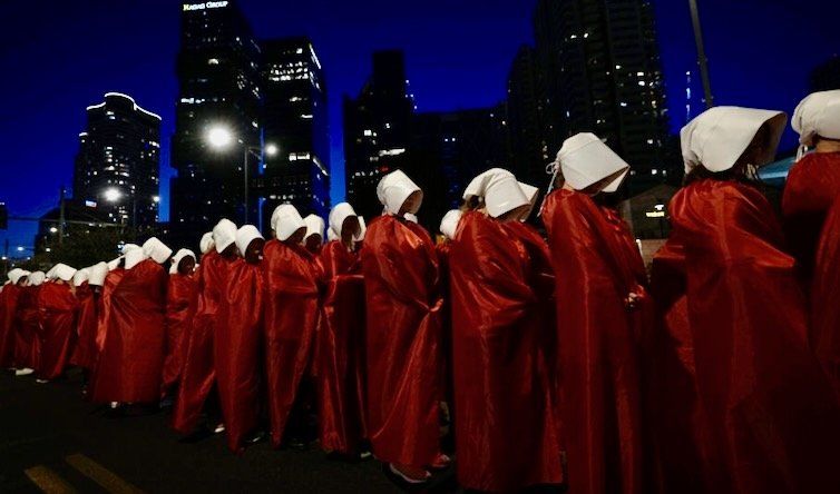 Atwood’s 1985 novel about a futuristic patriarchal society where the robed handmaids are forced to bear children for leaders, has reemerged in recent years as a cultural touchstone thanks to the popular TV series. Its themes of female subjugation and male domination have resonated with women today who see threats in limits on abortion rights, or in Israel’s case, in the rise of its conservative, religious government.