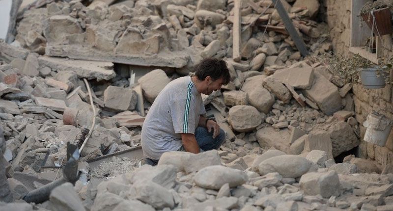 A man reacts to his damaged home after a strong earthquake hit Amatrice on August 24, 2016 (AFP Photo/Filippo Monteforte)