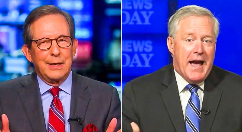 Fox News host Chris Wallace confronted White House Chief of Staff Mark Meadows on Sunday over President Donald Trump's praise of "hate group" QAnon.