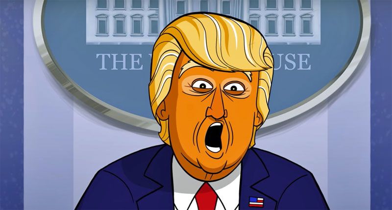 The "tru-ish misadventures" of President Donald Trump were parodied in a new episode by Showtime's Our Cartoon President. The show, produced by Stephen Colbert and his Late Show executive producer Chris Licht, featured a White House press conference with the commander in chief discussing his legal strategy and penis.