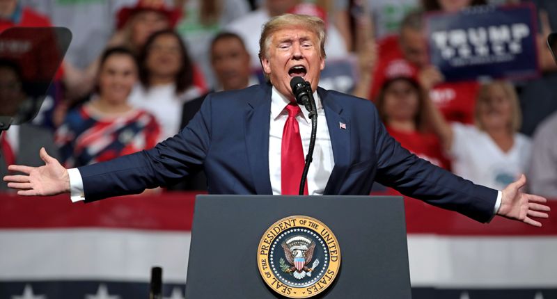 President Donald Trump at a campaign rally in Phoenix, photo by Gage Skidmore.